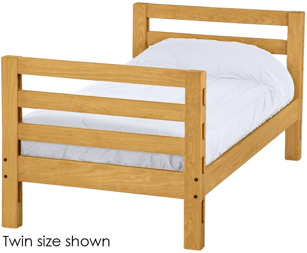 Options include extra-long for big kids and a taller version to allow 8" more headroom under the bed for comfortable seating when you add the upper bed.
