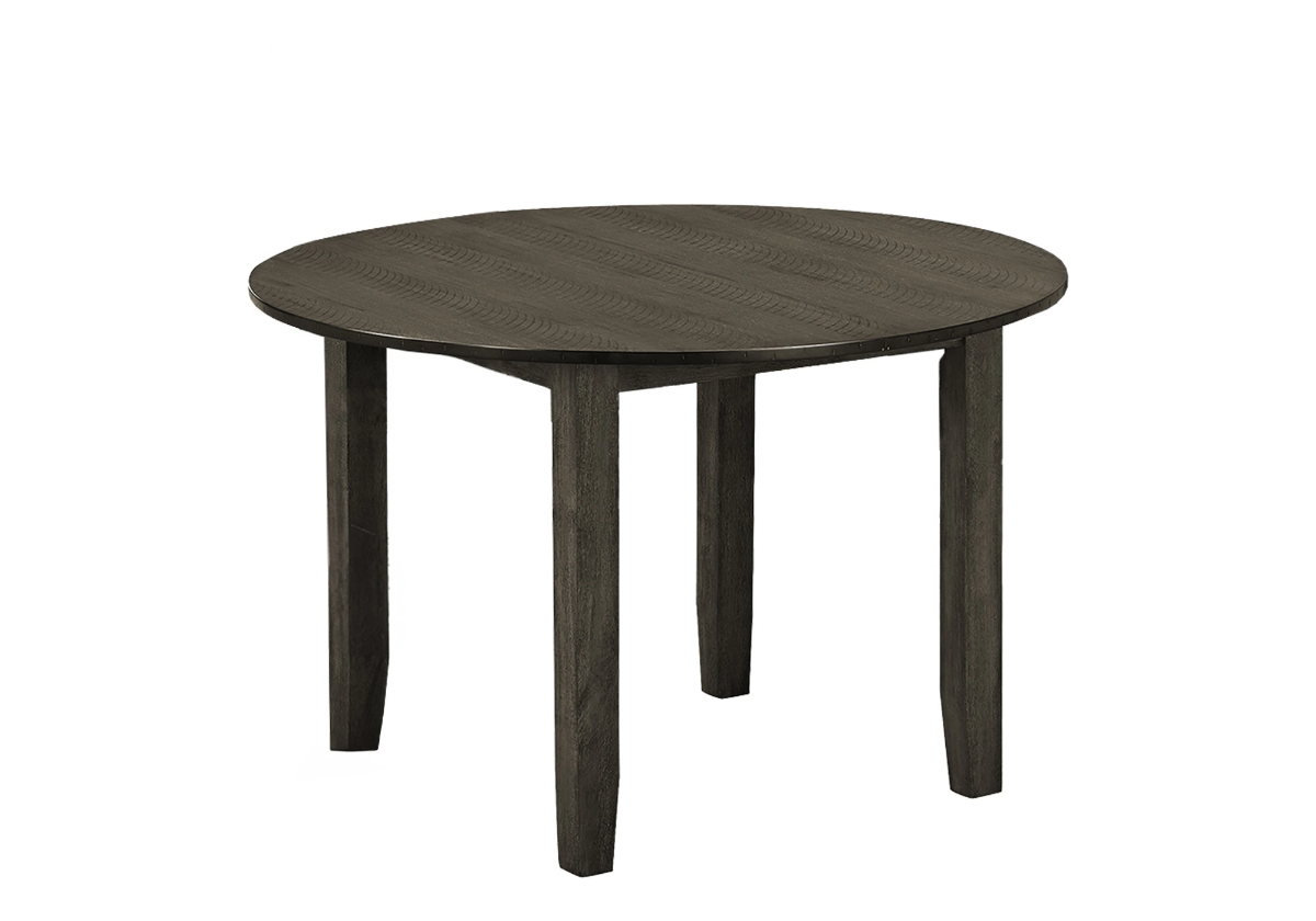 A fashionable style 48" round dining table, perfect for small spaces, featuring a chic antique grey veneer top that effortlessly complements any transitional kitchen or dining room decor