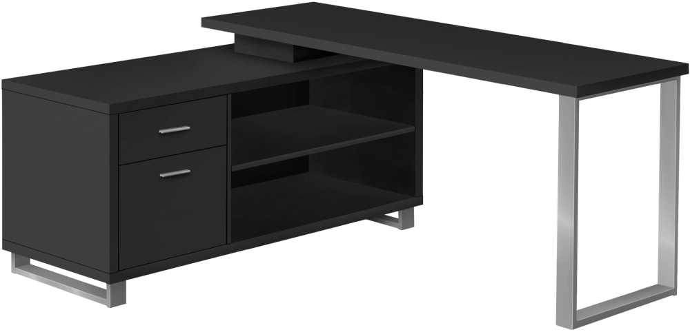 The two-tiered work top provides a large work area and ample space to store your office essentials, and a solid silver metal leg provides a stable base. The perfect computer desk for your home office, this spacious multi-storage workstation will be admired by your friends and colleagues. Staying organized at home has never been so easy and fashionable!