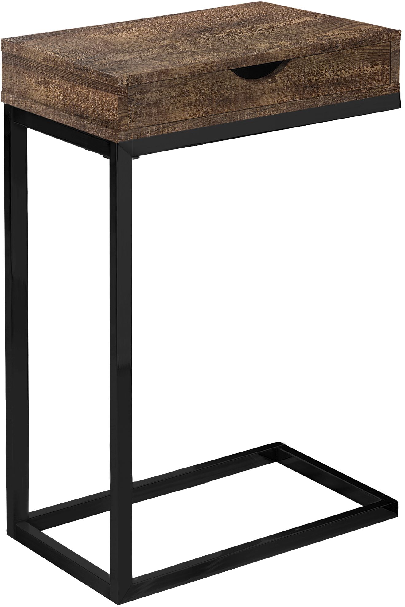 With a whole lot of classiness, this industrial C shape side and end table also comes with all the practicality you need. An ideal fit alongside your sofa or bed, the accent table is perfect for your small home, apartment or condo and will surely bring more jazz to your movie night, study session or quiet time. Featuring a trending brown reclaimed wood look, the sturdy black metal base sits slightly off the ground to prevent damage to your floor. Don't forget a convenient storage drawer for any living room accessories such as remotes, coasters, magazines or more. Make this your new favourite living room piece.