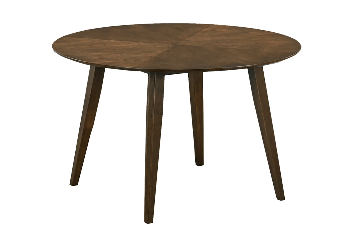 Freshen up your kitchen or dining room with this 48" round dining table in a mid-century design, finished in a stylish dark walnut veneer that brings a touch of elegance to any space
