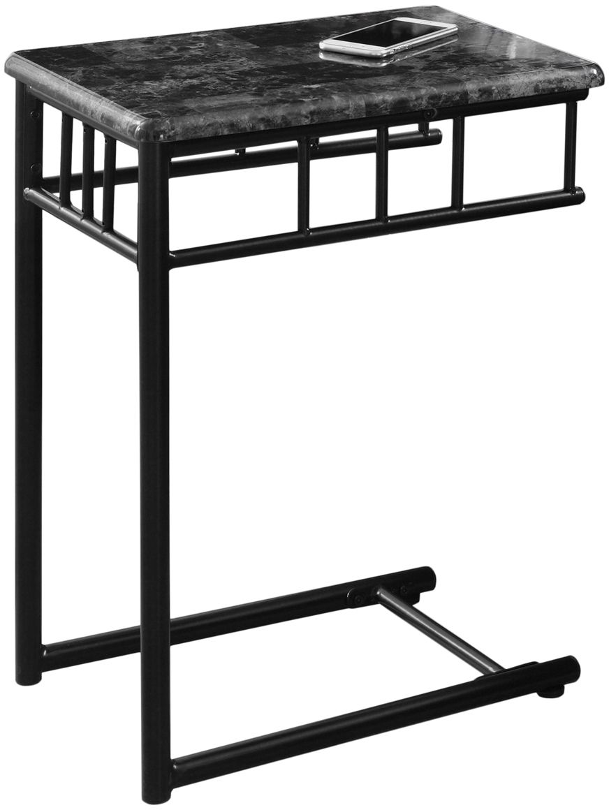 What a convenient way to eat or drink on your couch! This classic rectangular snack table with a grey marble-look top has enough space to place your tablet, laptop, snacks, drinks and even meals. The charcoal metal base provides sturdy support along with an elegant touch and is designed to easily slip under your sofa.