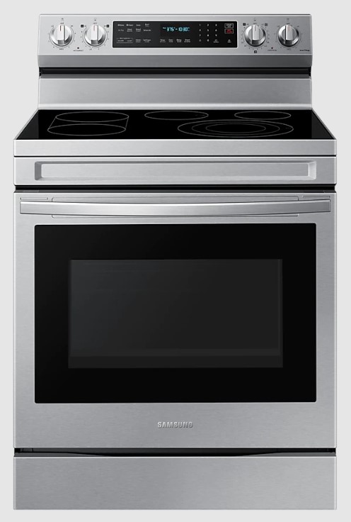 This Samsung 30" stainless steel freestanding electric Range is the must-have for your cooking needs. Create more or large dishes with a huge 6.3 cu. ft. capacity oven. You can prepare multiple dishes at once, or easily cook large items. Cook dishes quickly and evenly using the powerful heat and precise control of the 3.0kW Triple Ring Flexible Cooktop. It can rapidly go to a high heat for searing meat, and boiling water in a flash or turn it down to a true simmer.