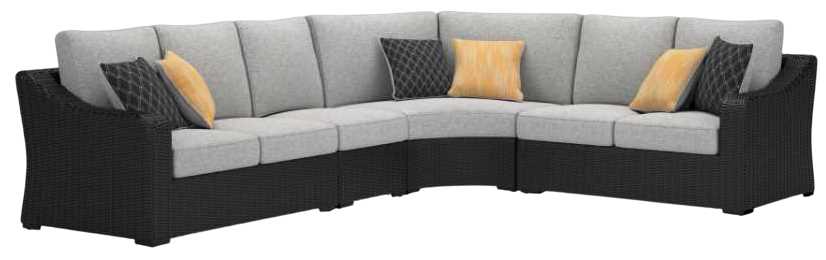 Signature Design by Ashley® Beachcroft 4-Piece Black/Light Gray Fabric/Resin Wicker Outdoor Sectional