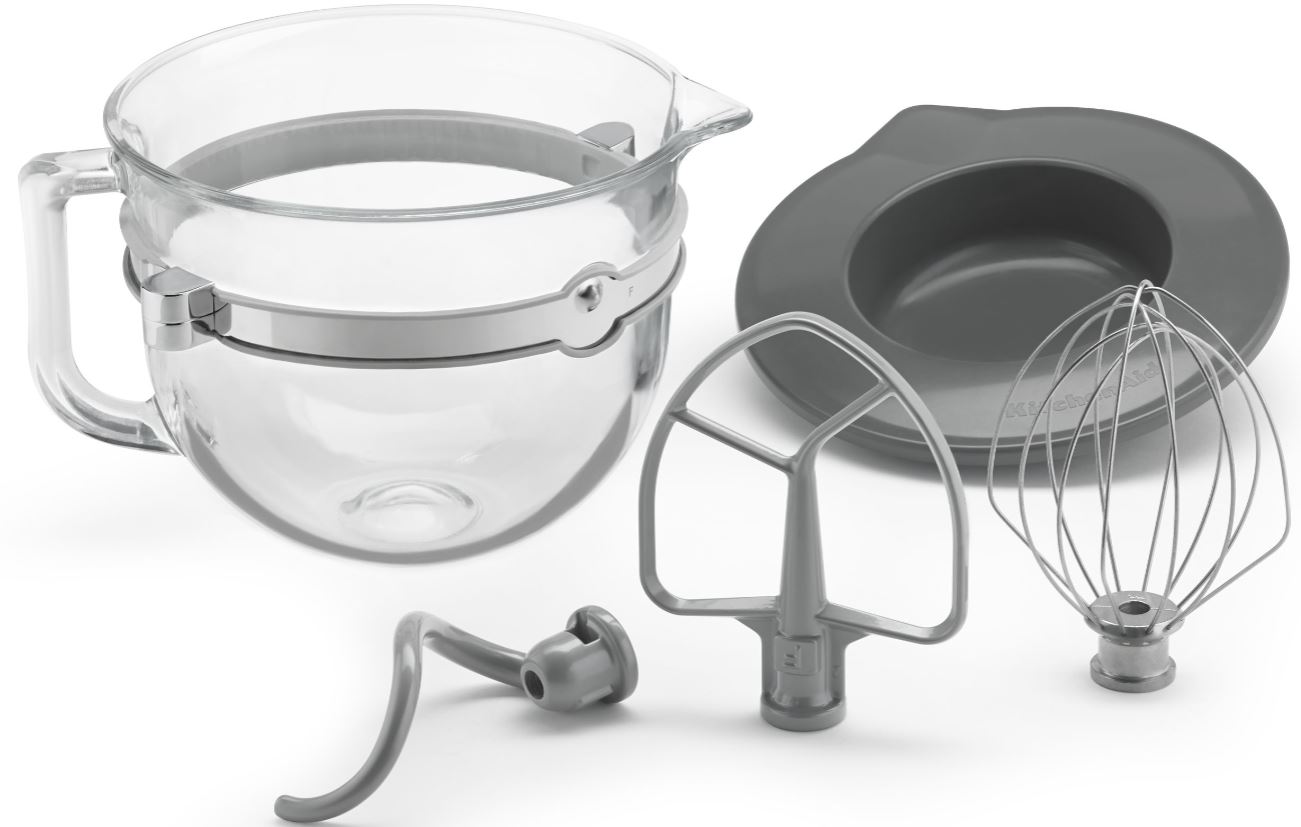 Ajoutez un nouveau look à votre batteur sur socle 6-Quart Bowl Lift avec l'ensemble d'accessoires pour bol en verre. Cet ensemble comprend un bol en verre de 6 litres, un batteur plat revêtu, un crochet à pâte revêtu et un fouet métallique. Convient à tous les batteurs sur socle à bras large KitchenAid : KP26, KF26, KSM6521, KSM7586, KSM7588, KSM7589, KV25.En savoir plus