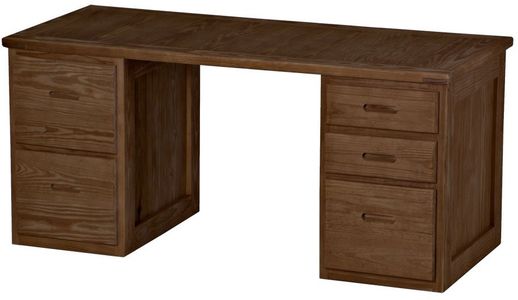 Home Office desk with 2 file drawers on the left side and 3 drawers on the right side. Consider adding a lacquer finish on the top for increased moisture resistance and cleanability. Desk shelves are available to add to your desk.Read More