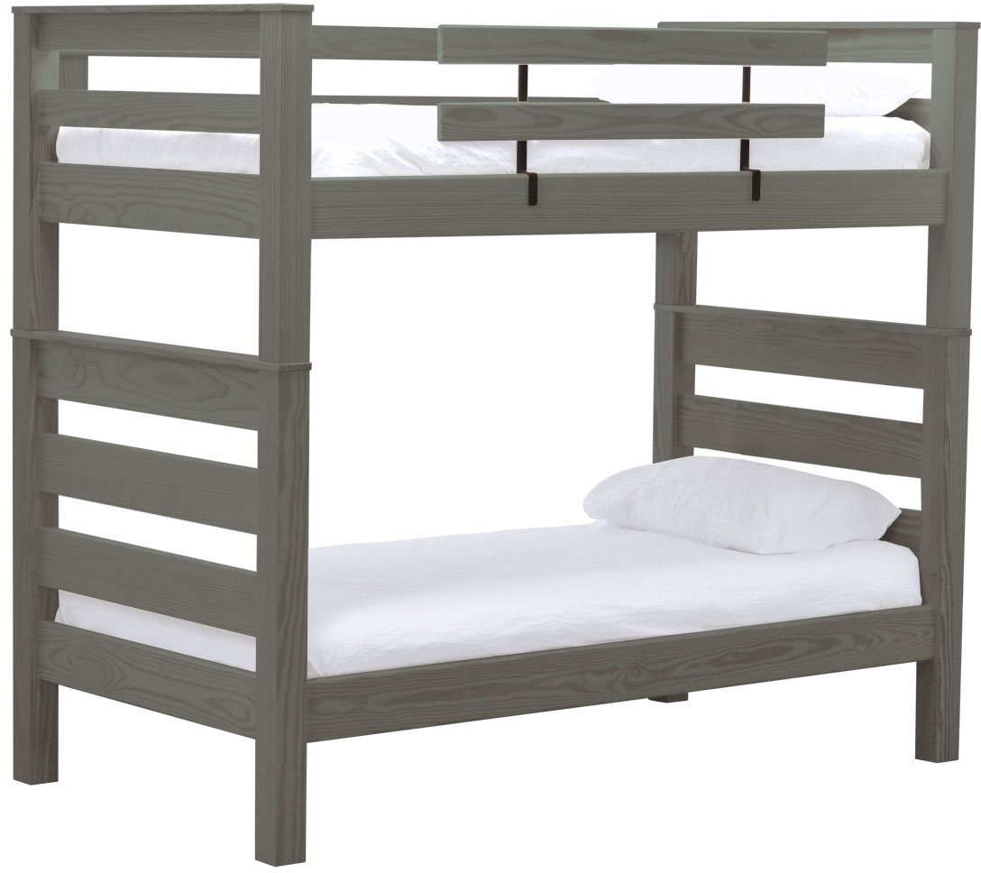 TimberFrame bunk beds feature massive corner posts with thick ladder rungs in between using mortise and tenon construction. A removable guardrail is included on the front with a full-length guardrail at the rear of the upper bed. Can be separated into 2 beds or set up as a loft.Read More
