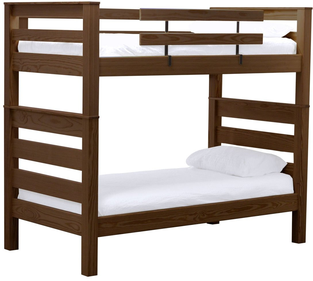 TimberFrame bunk beds feature massive corner posts with thick ladder rungs in between using mortise and tenon construction. A removable guardrail is included on the front with a full-length guardrail at the rear of the upper bed. Can be separated into 2 beds or set up as a loft.Read More