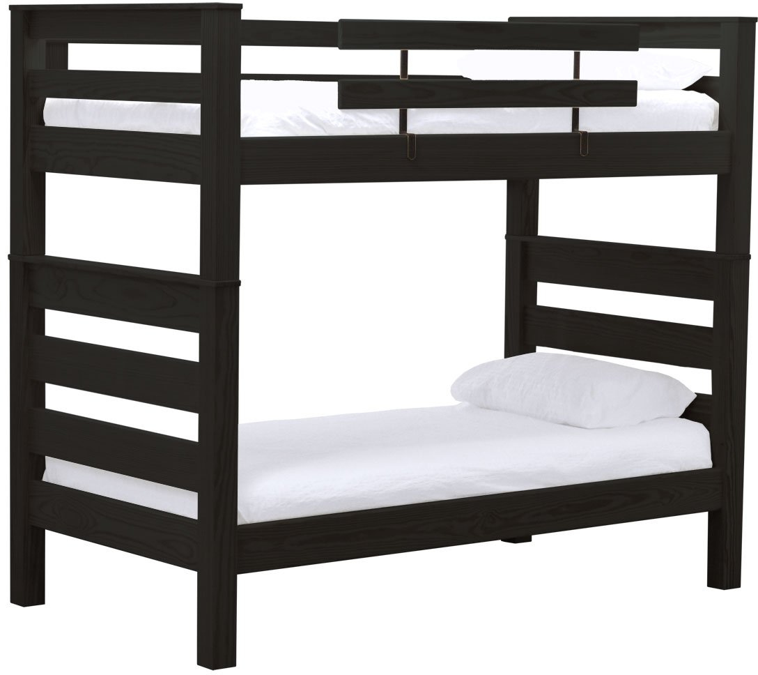 TimberFrame bunk beds feature massive corner posts with thick ladder rungs in between using mortise and tenon construction. A removable guardrail is included on the front with a full-length guardrail at the rear of the upper bed. Can be separated into 2 beds or set up as a loft.Read More