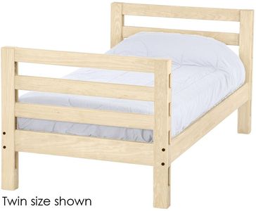 Options include extra-long for big kids and a taller version to allow 8" more headroom under the bed for comfortable seating when you add the upper bed.
