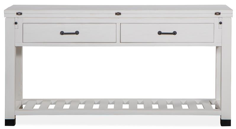 Elevate your living room with this Harper Springs Sofa Table from Magnussen Home®. Shown in silo white finish, this table features a 2 top drawers and table can be extended to 36"D with 2 flip top panels.. Make a bold statement by incorporating this stunning furniture to your home.Read More