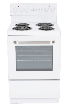 Perfect for the cottage, apartment or wherever space is tight, this Marathon 24” wide contemporary style range features 2-6’’and 2 Fast Heating 8’’ coil burner elements with porcelain burner bowls. Bake or Broil in the spacious 2.7 cu.ft. easy clean oven with up-swept porcelain lift-up cooktop.Read More