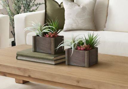 Each succulent is displayed in a stylish brown wooden pot, creating a balanced blend of natural texture and contemporary design. Crafted from high-quality materials, these artificial plants feature a carefully detailed realistic look that captures the beauty of live succulents while requiring no maintenance - no watering, sunlight, or upkeep needed. Made with environmentally friendly materials and backed by a 5-year limited warranty, this artificial plant set delivers lasting quality, sustainability, and effortless style. It's an ideal solution for adding greenery to modern interiors with zero maintenance and timeless appeal.