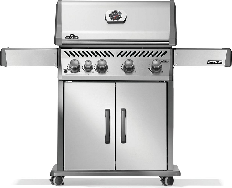 The sleek Napoleon Rogue® 525 Propane Gas Grill in stainless steel is a stylish upgrade for your outdoor living space. Achieve the best sear marks with our Wave cast iron cooking grids. Four stainless steel burners ensure precise temperature control, while dual-level sear plates intensify flavors by vaporizing drippings. With 525 square inches of grilling space, create mouthwatering meals for any occasion. An integrated Range Side Burner makes sauces and sides a breeze. Durable and stylish stainless steel surfaces resist weather and wear. Maneuver with ease using locking casters, and save space with folding stainless steel side shelves. Experience unmatched versatility, quality, and affordability with this Napoleon Rogue® Gas Grill.Read More