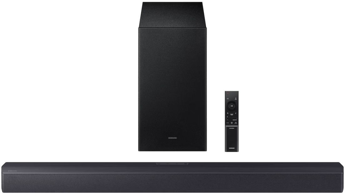Enhance your listening experience with a complete 2.1ch sound system that includes a wireless subwoofer for deep, rich bass.